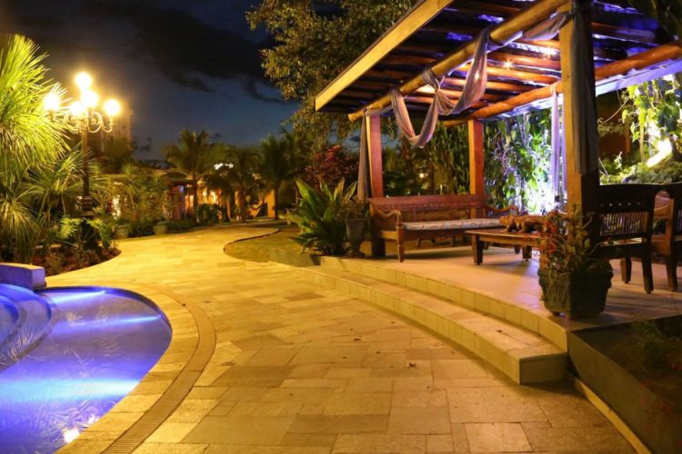 Por aqui, os hóspedes vão curtir um visual incrível. Todo o local é rodeado por flores, palmeiras e muita natureza, o que o diferencia das demais acomodações.